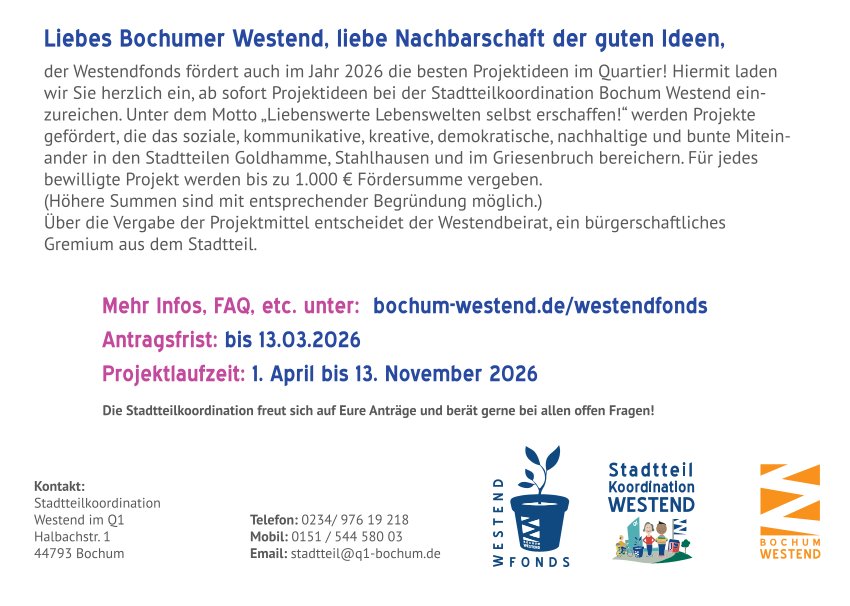 2026 steht der Westendfonds unter dem Motto „Liebenswerte Lebenswelten selbst erschaffen!“